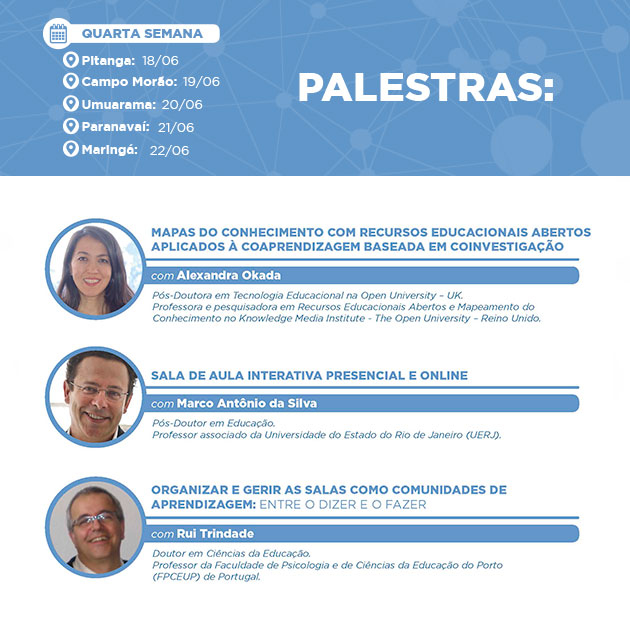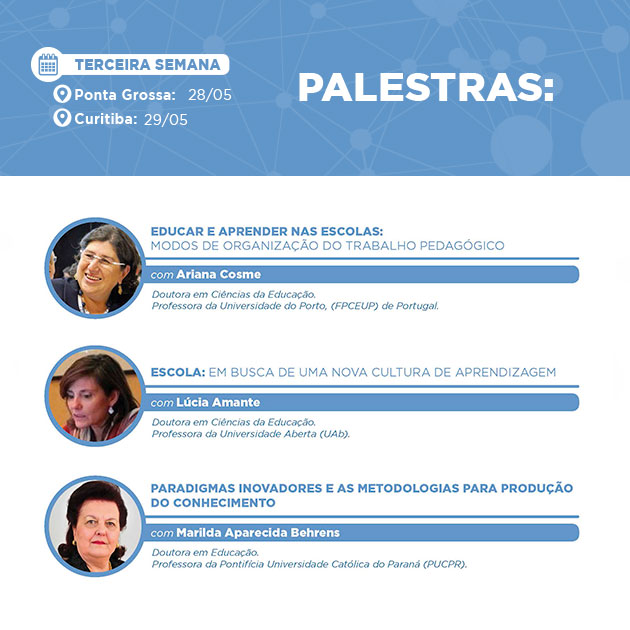 Entre 15 de maio e 22 de junho de 2018, será realizado o 2º.  Seminário Regional de Formação de Professores do Agrinho, evento que irá percorrer 15 cidades com uma programação especial de palestras voltadas aos docentes para a utilização do material didático do Programa. Para estes encontros já está confirmada a participação de palestrantes nacionais e internacionais com ampla experiência na área da educação. O objetivo é promover a formação continuada de professores e propiciar o acesso às bases teóricas propostas pelo programa. A capacitação de professores é uma das etapas do Programa Agrinho que fornece materiais didáticos para escolas públicas e particulares de todo o Paraná, num trabalho que envolve 80 mil professores e um milhão de alunos da educação infantil, do ensino fundamental e da educação especial. Tudo isso, para que professores e alunos possam trabalhar em sala de aula temas transversais como saúde, cidadania, meio ambiente, segurança pessoal e outros que dialogam com a vida dos estudantes, promovendo a conexão dos meios urbano e rural. Com 22 anos de existência, o Agrinho é o principal programa de responsabilidade social do Sistema FAEP/ SENAR-PR.