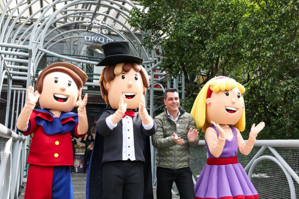 O presidente interino do Sistema FAEP, Ágide Eduardo Meneguette, ao lado dos personagens do Agrinho