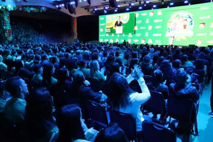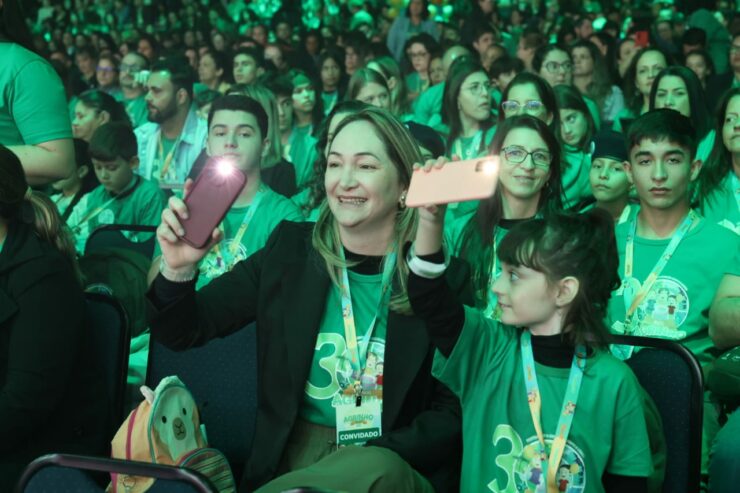 O Centro de Convenções Expotrade, em Pinhais, na Região Metropolitana de Curitiba (RMC), se encheu de sorrisos, aplausos e emoção nesta segunda-feira (20), para comemorar os 30 anos do Programa Agrinho, a maior iniciativa de responsabilidade social do Sistema FAEP. Mais de 4 mil pessoas, entre estudantes, familiares, professores, diretores, autoridades e representantes da comunidade escolar, prestigiaram o evento, que celebrou o impacto transformador do Agrinho na educação do Paraná.