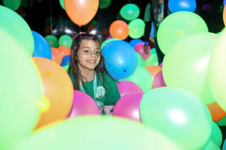 Uma imersão educativa e interativa permitiu ao público revisitar as três décadas do Programa Agrinho por meio de um túnel do tempo iluminado por LEDs, enquanto atividades lúdicas e tecnológicas estimularam a criatividade, a cooperação e a consciência ambiental, garantindo que cada participante vivenciasse o espírito do programa.