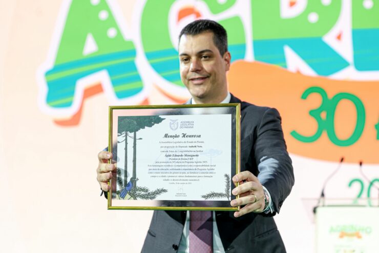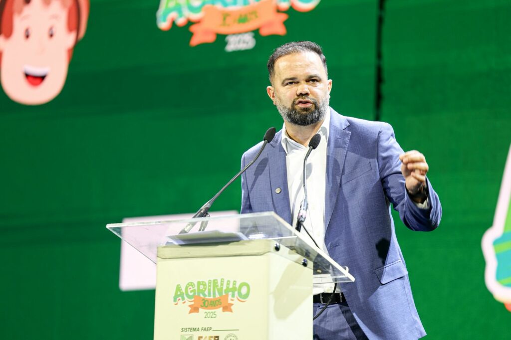 Durante a cerimônia, o presidente interino do Sistema FAEP, Ágide Eduardo Meneguette, destacou o papel do Agrinho para a formação de cidadãos conscientes e comprometidos com o futuro. “Dia histórico. Estamos reunidos para comemorar 30 anos de um sonho que se tornou realidade. Quando o Agrinho começou, a missão era clara: aproximar o campo da cidade e levar para as escolas educação, cidadania, ciência e amor pela terra. Professores comprometidos, estudantes curiosos e uma rede de parceiros visionários transformaram aquele projeto inicial em um movimento de transformação social”, afirmou.