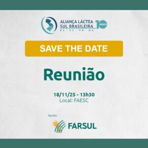 A “Aliança Láctea Sul Brasileira” foi constituída como o fórum público-privado que deverá desenvolver e fomentar a implementação desse plano para harmonizar o ambiente produtivo, industrial e comercial dos 3 estados, criando o início de um bloco fornecedor de leite e derivados com qualidades semelhantes, para os mercados interno e externo.