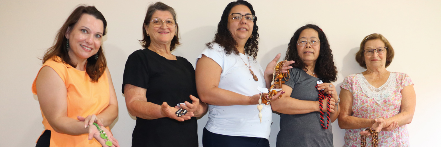Um grupo de mulheres de Itambé, no Noroeste do Paraná, resolveu empreender após participar do curso “Artesanatos com sementes – biojoias”, promovido pelo Sistema FAEP. Com os conhecimentos adquiridos durante o treinamento, surgiu a ideia de fundar uma associação para comprar insumos e produzir peças para a venda. A iniciativa tem dado certo. A Natu Biojoias já possui logomarca e um perfil no Instagram para divulgar e comercializar seus produtos. O grupo é composto por Gilsemara Cagni, Viviane Dolphine Campagnoli, Márcia Noriko Ueoka, Diva Dela Rosa Campagnoli, Maria Dirma Antonini Trombini e Fátima Aparecida Bersi Michelin.