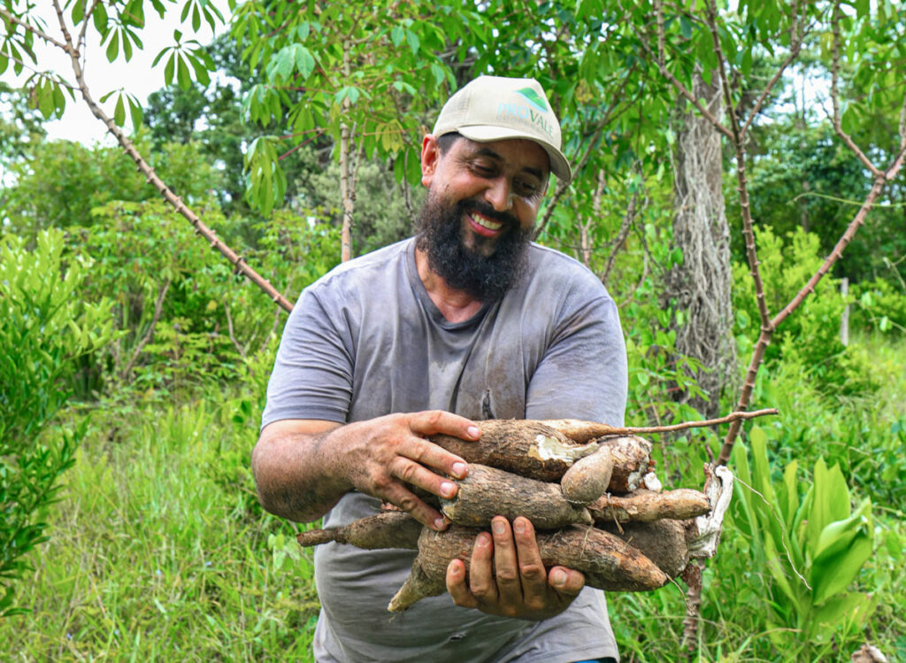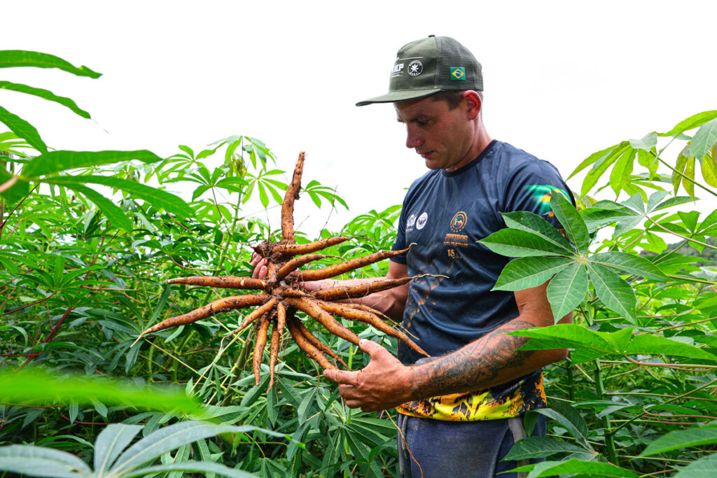 Na lavoura, também houve alteração na produtividade. Antes do acompanhamento técnico, a média era de aproximadamente três quilos por pé de mandioca. Ao final do ciclo, a produção alcançou cerca de seis quilos por planta, com ajustes na adubação e no manejo do solo.