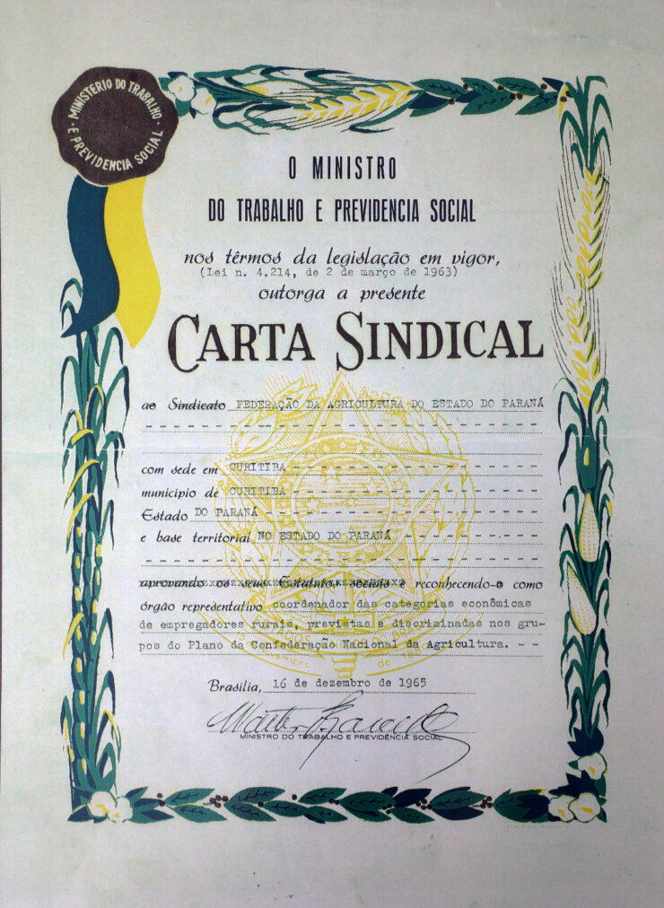 Neste 16 de dezembro, a Federação da Agricultura do Estado do Paraná (FAEP) completa 60 anos de conquistas em prol do produtor rural e de atuações para o avanço do setor agropecuário estadual. A entidade criada em 1965, quando o Ministério do Trabalho e Previdência Social outorgou a Carta Sindical, trabalha para defender os interesses do agricultor paranaense.
