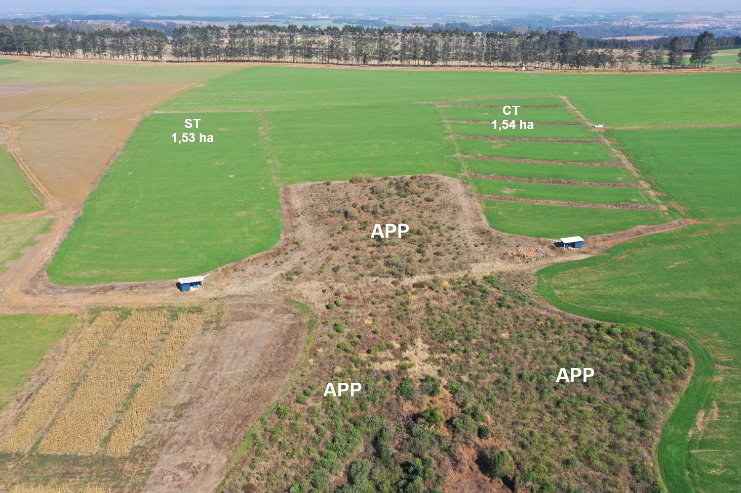 Os terraços ocupavam área entre 2% e 3% das lavouras analisadas e nos períodos de seca, nos anos de 2019, 2020 e 2021, auxiliaram em maior produtividade, na comparação com os terrenos sem essa cobertura no solo.