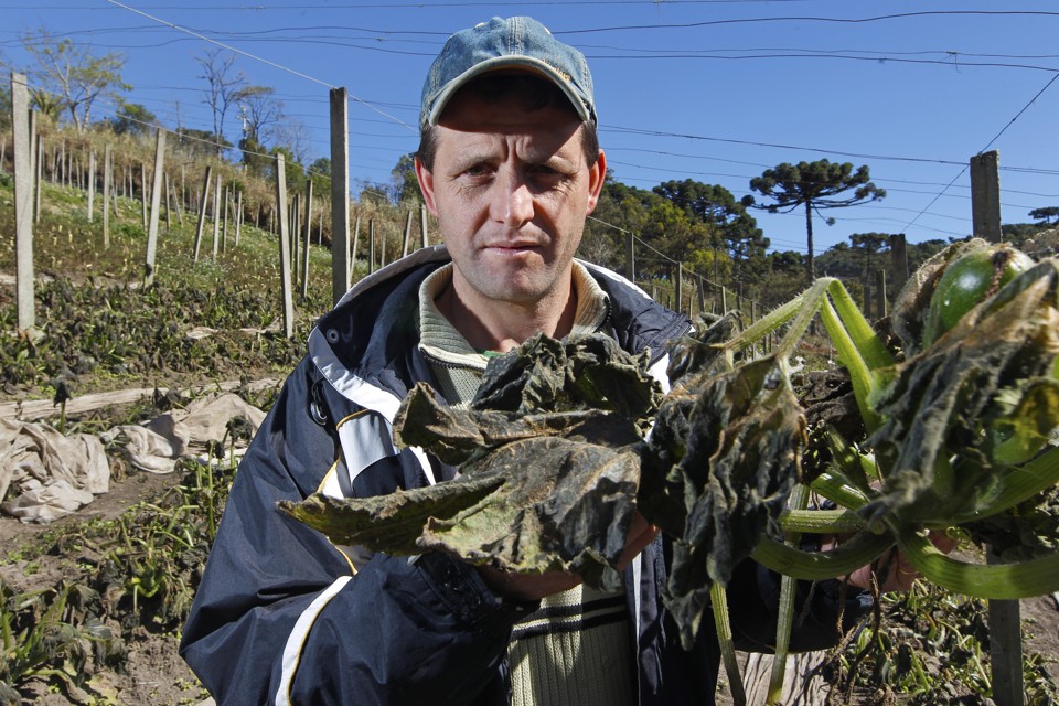 Em Colombo, na RMC, o produtor Angelo João Bontorin plantou chuchu, mas a expectativa de colher 300 caixas foi frustrada pelas condições meteorológicas. “Eu perdi tudo. Agora vou derrubar todos os pés e esperar até agosto para plantar. Meu investimento de R$ 3 mil foi perdido em um dia”, conta. O filho dele, Adriano Bontorin, que plantou abobrinha em outra propriedade, também perdeu toda a lavoura. “Eu vou duas vezes por semana à Ceasa, mas nesta semana já não poderei ir”, lamenta.
