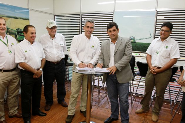 O secretário executivo do SENAR nacional, Daniel Carrara e o superintendente do SENAR-PR, Humberto Malucelli Neto, assinaram  um acordo de cooperação técnica com a empresa John Deere – líder mundial em equipamentos agrícolas –  nessa terça-feira (4/2) durante o Show Rural Coopavel. O objetivo da parceria é capacitar instrutores do SENAR nas áreas de Agricultura de Precisão (AP) e mecanização. “Todo mundo acha que AP é um bicho de sete cabeças, entretanto, essa tecnologia pode ser adotada por qualquer produtor, independente do tamanho da propriedade. Temos que desmistificar esse conceito. Essa parceria entre técnicos da John Deere e SENAR vai levar o conhecimento ao produtor”, avalia Carrara. Acrescentando que o setor de máquinas concentra a segunda maior demanda de cursos da instituição: 200 mil pessoas por ano.