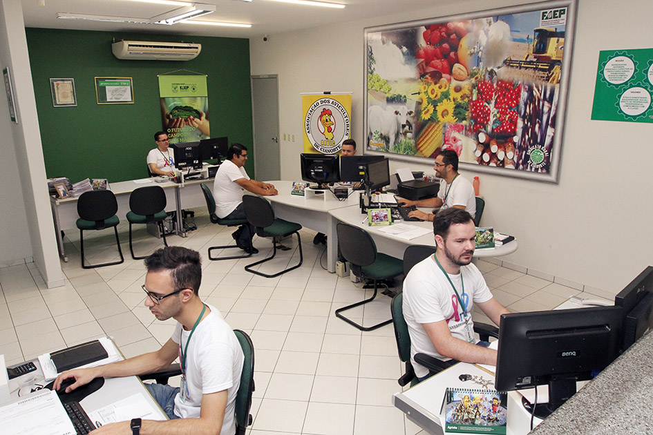 O Sindicato Rural de Cianorte também vem atuando forte na prestação de serviços. Segundo o presidente, hoje, a entidade atua como um escritório de contabilidade, mas com uma diferença: a especialização no setor rural. Todos os funcionários passam por capacitação constante, com suporte da FAEP. Assim, a equipe está atualizada a todas as mudanças na legislação e apta a atender com segurança aos associados. Outro detalhe é a carteira de serviços, que abrange mais de 30 itens, que vão da emissão de certidões e de cadastros, a contratos e folhas de pagamento.