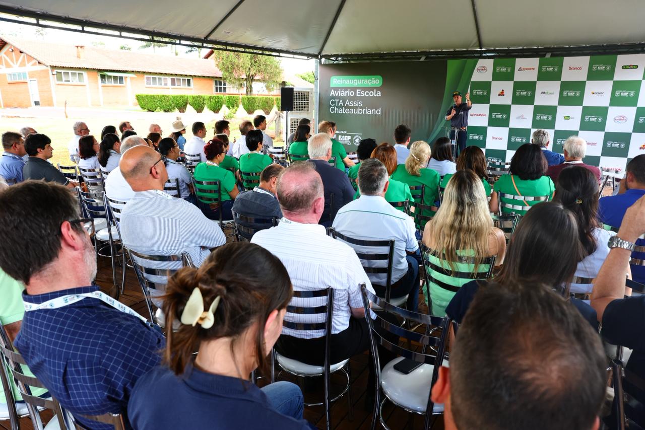 O Sistema FAEP reinaugurou, nesta segunda-feira (9), o seu aviário escola no Centro de Treinamento Agropecuário (CTA) de Assis Chateaubriand, na região Oeste do Paraná. O evento contou com a presença de 100 pessoas, entre autoridades, líderes do setor e parceiros, como o secretário estadual da Agricultura e Abastecimento, Márcio Nunes; secretário da Agricultura e Proteína Animal de Toledo, Luiz Carlos Bombardelli; secretário de Agricultura e Transportes de Assis Chateaubriand, Clóvis Antônio Boni; e os presidentes dos sindicatos rurais de Marechal Cândido Rondon e Assis Chateaubriand, Edio Luiz Chapla e Valdemar Bellato, respectivamente.